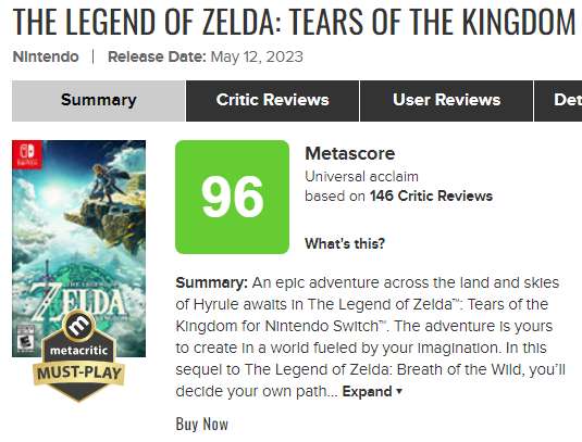 GOTY 후보로 점쳐지는 '젠다의 전설 : 티어스 오브 더 킹덤'과 '발더스 게이트 3'는 96점으로 거의 최고치에 가까운 점수를 받았는데요. 이와 경쟁할 줄 알았던 '스타필드'의 점수는 현재 '디아블로 4'와 어깨를 나란히 하고 있답니다. 두 작품 모두 훌륭한 게임성으로 대중에게 사랑받았지만, 앞선 대작들로 높아진 게이머들의 기대치에 못 미칠거란 예상입니다.