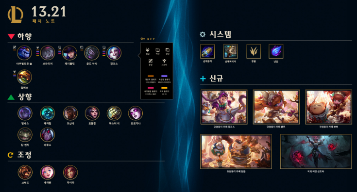 모든 챔피언 밸런싱이 초기화됐어요! '돌격! 넥서스' 마지막 출시 후, 게임에 많은 변화가 있었잖아요? 그래서 모든 것을 고려해서 밸런스를 다시 맞춰봤다고 하는데요. 만약 너무 강하거나 약한 챔피언이 있다면 바로 조정을 한다고 하네요. 걱정하지 말라는 개발진의 의견이 있었습니다. ㅎㅎ