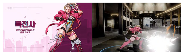 특전사는 잡기 기술에 특화된 캐릭터입니다. 여러 잡기 기술로 인해 적과 최대한 근접해야 하지만 지상과 공중을 가리지 않는 다양한 잡기 기술로 끊임없이 몰아칠 수 있죠. 궁극기 파일드라이버는 적을 잡고 공중에서 땅으로 처박는 프로레슬링 기술입니다.