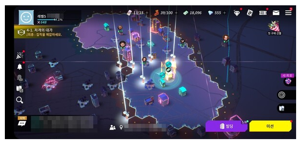 이 게임은 빌딩을 많이 소유할수록 강해집니다. 빌딩 소유 시 장착 가능한 '코어'의 성능과 보유 개수가 전투력을 좌우하죠. 빌딩 등급이 높을수록 코어 성능이 비례하며, 빌딩을 차지하기 위한 경쟁 또한 치열해집니다.