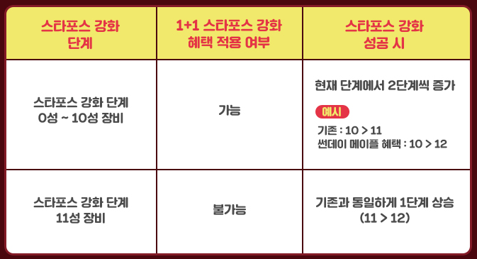 10성 이하에서 스타포스 강화 성공 시 1+1 강화