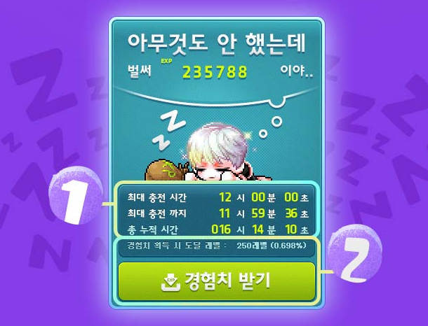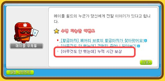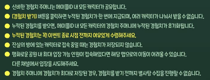 이벤트 알림이를 통해 아무것도 안 했는데 경험치 주머니를 확인할 수 있습니다.