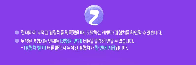 경험치를 획득한 시간에 따라 아래 보상을 획득할 수 있습니다.