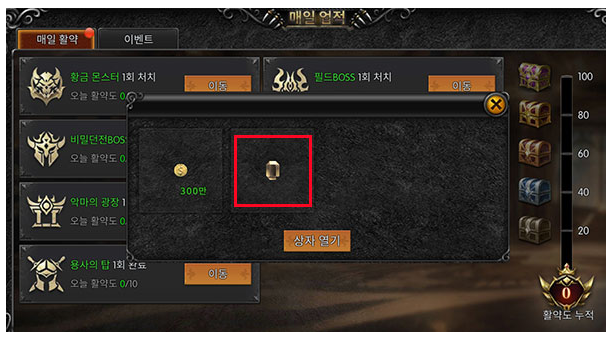 재료 중 생명의 보석은 드랍율이 높지 않고, 수급처가 많지 않아 획득이 까다롭습니다. 대신 매일 업적 100점을 달성하면 확정적으로 1개를 받을 수 있기 때문에 매일 업적 조건을 달성해 하루에 1개씩 획득합시다.