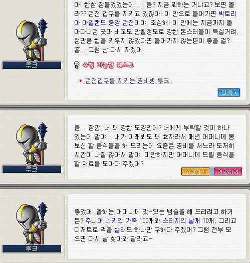메이플랜드 옛날 메이플 던전입구를 지키는 경비병 루크 퀘스트 공략
