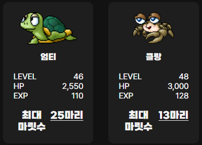 엄티: 레벨 46의 몬스터로, HP 2,550과 경험치 110을 제공합니다. 최대 25마리까지 출현하며, 도전적이면서도 만족스러운 사냥 경험을 선사합니다.