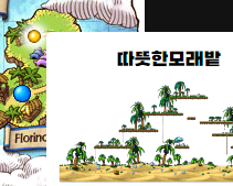 따뜻한 모래밭 도착: 플로리나로드를 따라 이동하다 보면 '따뜻한모래밭'에 도착하게 됩니다. 이곳은 엄티와 클랑이 서식하는, 따스한 햇볕 아래의 완벽한 사냥터입니다.