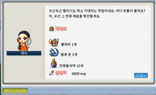 아이템: 뿔피리 1개, 블루 문 1개, 만병통치약 10개