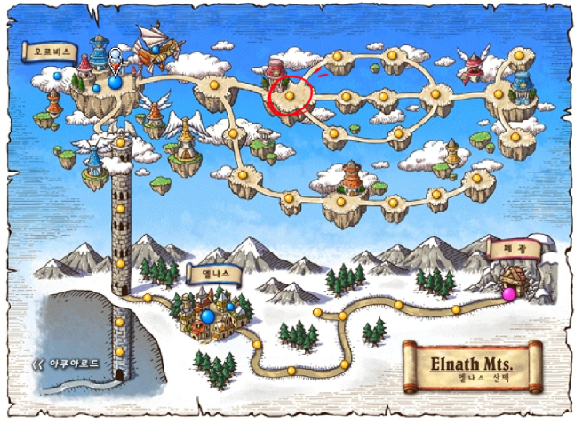 '구름공원1' 맵의 우측 최상단 포탈을 통해 '세가지 빛의 정원으로 가는길'로 이동합니다.