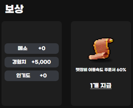 보상: 경험치 5,000, 리사의 특수치료제, 펫장비 이동속도 주문서 60%