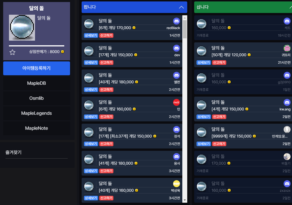 메이플스토리의 달의 돌: 시세 분석