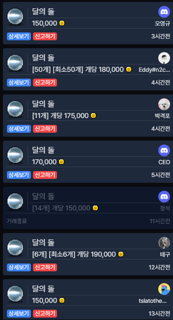 💫 달의 돌: 최근 판매 가격