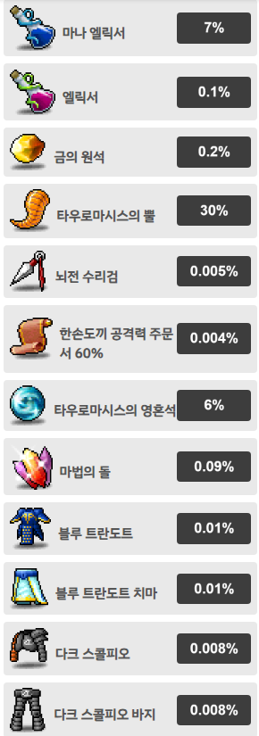 메이플랜드 타우로마시스 신전의입구 드랍 아이템 사냥터 위치 정보