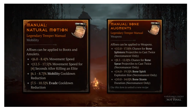개발진은 크래프팅 시스템에 '템퍼링'과 '마스터워킹'이라는 두 가지 새로운 개념을 도입합니다. '템퍼링'을 통해 전설 또는 고유 유니크 아이템에 추가 옵션을 부여할 수 있으며, '마스터워킹'을 통해 아이템을 최대 12강까지 강화할 수 있습니다. 이러한 강화 과정은 아이템의 특정 옵션 수치를 크게 향상시켜, 플레이어의 캐릭터를 더욱 강력하게 만들어 줄 것입니다.