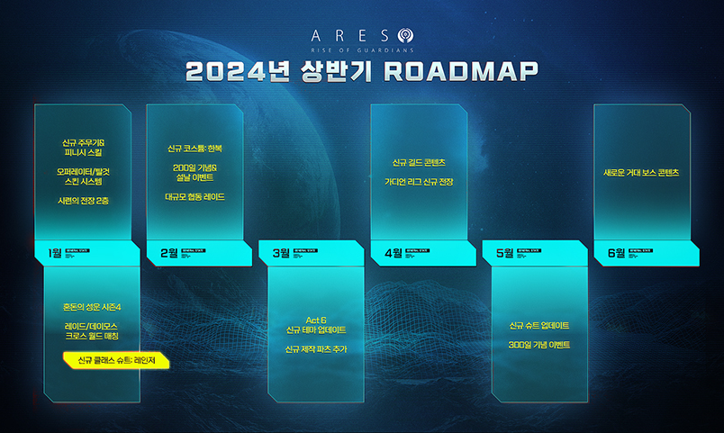 아레스 라이즈 오브 가디언즈 2024년 상반기 로드맵입니다.