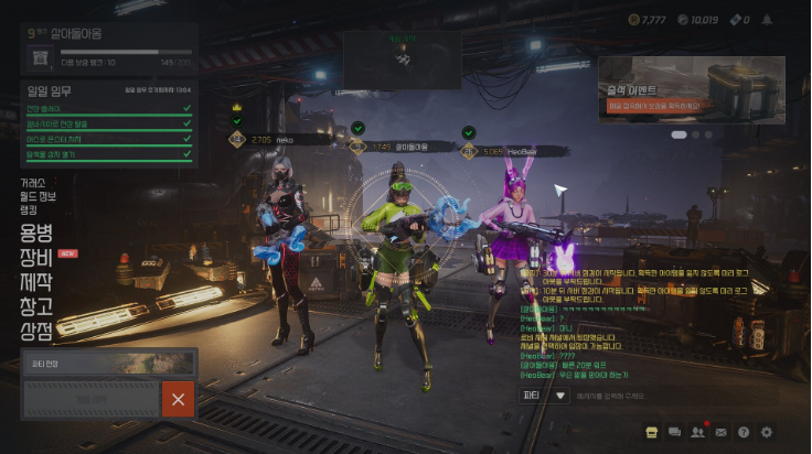 기본적으로 기존 솔로 플레이의 구성이나 규칙이 그대로 이어지나, 전장 진입 시 3인 파티를 먼저 구성해서 들어간다는 것 하나만으로 플레이의 양상이 크게 달라집니다. 엘리트 몬스터나 거대 보스를 잡을 때도 파티원들과 함께 힘을 합쳐 좀 더 수월하게 사냥할 수 있고, 각자가 필요로 하는 장비나 설계도 등을 나누며 더 유동적으로 파밍할 수 있게 됐으며, 만약 전투 중에 쓰러지더라도 서로 부활시켜 줄 수 있습니다.