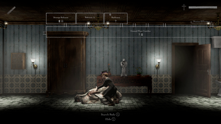 워더링 룸즈의 맵은 방이 일렬로 나열된 통로 여러 개를 붙여 만든 비교적 단순한 형태를 띠고 있습니다. 게다가 맵 곳곳의 수납장, 적 몬스터, 상점 등에서 쉽게 자원을 얻을 수 있습니다. 그럼에도 다른 생존 공포 타이틀에서처럼 물자에 집착하고 소중히 여기게 되는데, 사망 시 아이템 대부분을 잃는 시스템 때문입니다.