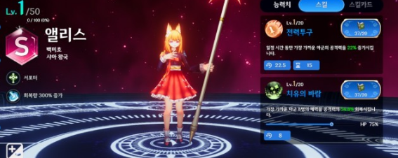 두 번째는 힐러 앨리스입니다. 앨리스는 서포터로써 체력회복과 파티원 공증이 있어서 활용하기 좋아 보입니다.