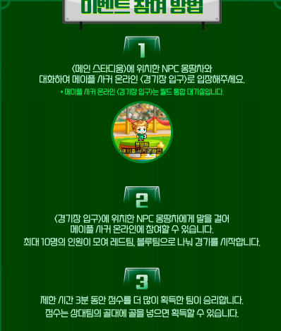 메이플 사커온라인 이벤트입니다. 이벤트 참여 대상은 [빅토리아컵] 운동회 미션 시작하기 퀘스트를 완료한 101 레벨 이상 캐릭터 또는 스토리 퀘스트 챕터 2를 완료한 제로 캐릭터입니다.