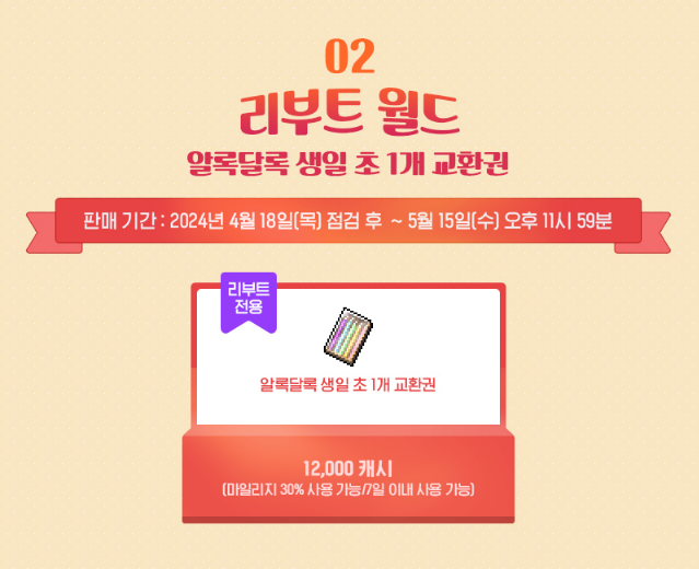 리부트 전용 알록달록 생일 초 1개 교환권을 판매합니다.