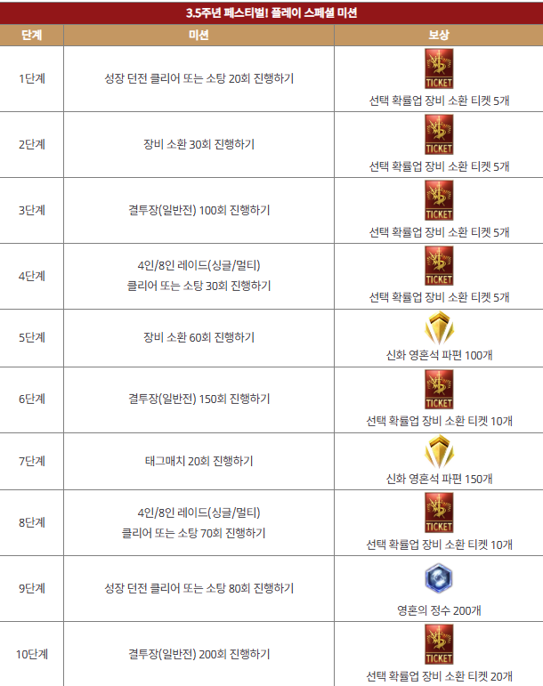 이벤트 기간 동안 스페셜 미션을 달성하면 단계별 특별 보상을 지급해 준다고 합니다.