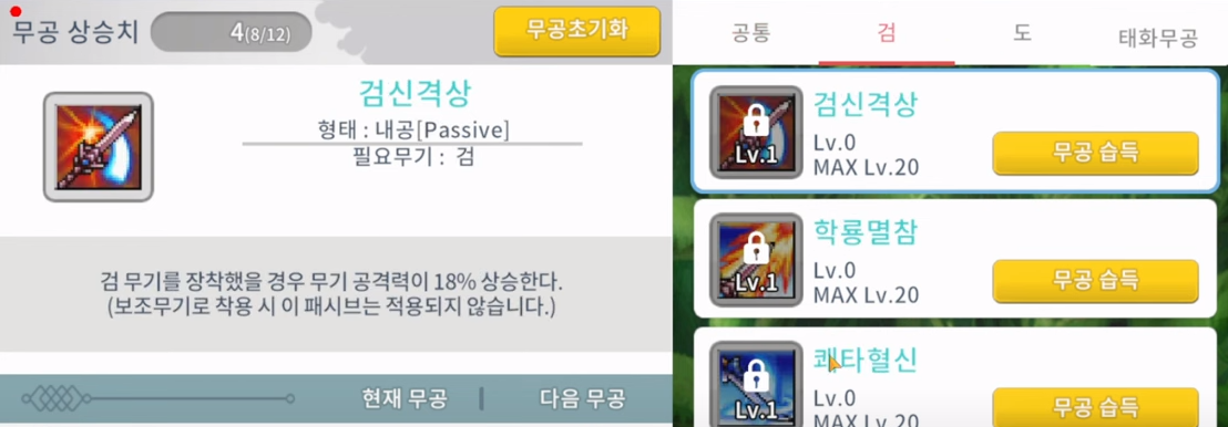 무공 추천입니다. 공용무공은 경공과 허공답보를 추천드립니다. 1차무공은 주직업만 파벌무공은 패스하시는 것을 추천드립니다. 1차+공용무공 55포인트를 사용해야 2차무공을 사용할 수 있습니다. 도사의 경우 원거리 공격으로 인해 초반 장풍이나 파벌무공의 비룡장 등을 사용하시고 추후 무공 초기화를 하셔도 상관없습니다. 각 직업마다 함정 무공이라는 게 있는데 부역사는 위에서 찍는 무공, 활사수는 2차 무공에서 2연공격이 있습니다.