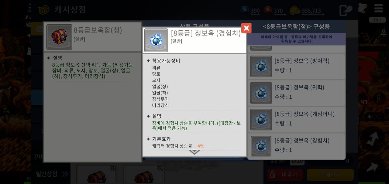 의상을 보시면 각 부위당 보옥 2개씩 가능합니다. 보옥 경험치 4프로씩 모든 의상에 착용할 경우 빠른 레벨업이 가능하빈다. 메인장비가 아니라 장비 교체 시 보옥을 다시 장착하는 비용은 없습니다. 의상을 2벌 가지고 있다면 하나는 경험치 보옥으로 다른 하나는 결투용 의상으로 준비해서 활력이나 힘 혹은 근력에 투자해서 상황에 맞게 바꿔 입으시면 됩니다.