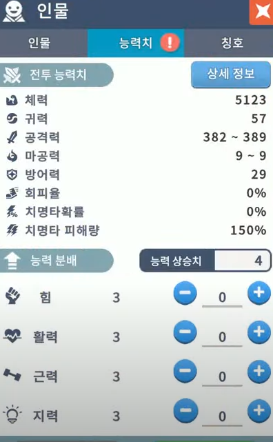 귀혼m 스텟입니다. 힘은 체력과 공격력 최소 공격력과 최대공격력이 조금 올라갑니다. 활력은 최소공격력과 최대공격력이 많이 올라갑니다. 근력은 방어력과 체력이 올라갑니다. 지력은 귀력과 마공력이 올라갑니다. 물리 직업이라면 활력3 근력1 또는 힘1 활력2 근1 장비빨을 많이 받으시려면 올활력이나 올힘도 좋습니다.
