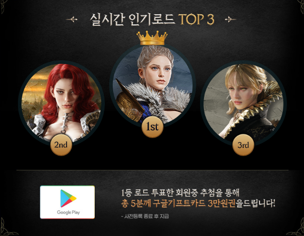 또한 로드 인기투표를 통해 추첨으로 총 5분께 구글기프트카드 3만 원권을 지급해 준다고 합니다.