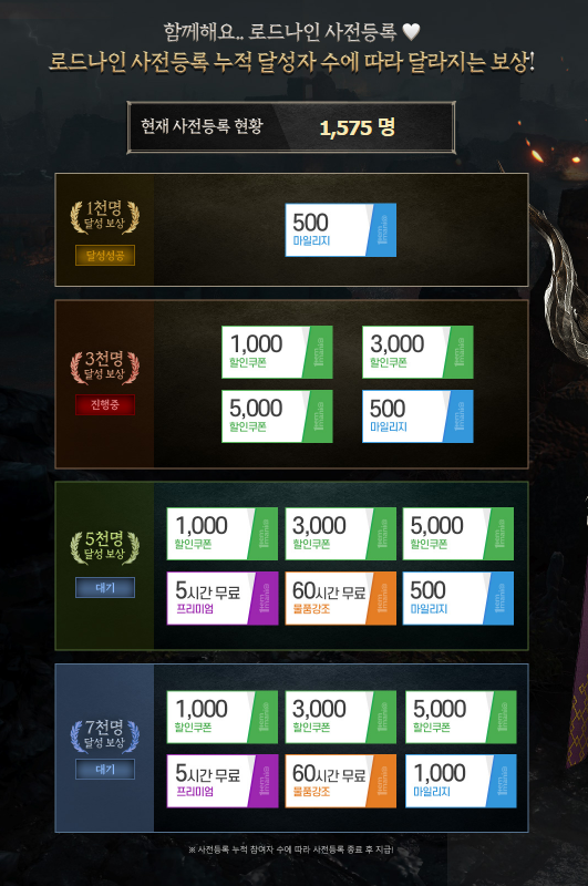 로드나인과 관련된 사전등록 이벤트 정보입니다.