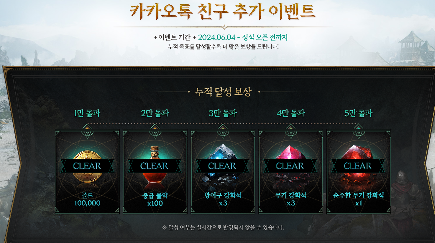 마지막으로 로드나인 사전등록 누적 달성자 수에 따른 보상 지급 이벤트입니다. 많은 분들이 참여할수록 보상이 늘어나니까 많은 참여 바랍니다. 이벤트 관련 정보는 아래 배너를 클릭하시면 자세하게 확인해 보실 수 있습니다.