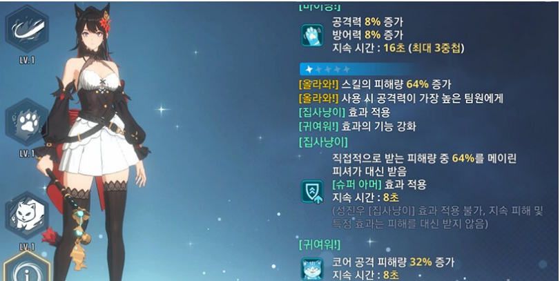 메이린 1 진화 시 강화된 '올라와!' 스킬을 사용하면 아군 공격력이 가장 높은 팀원에게 '집사냥이' 효과가 부여되고, 기존 코어 공격 피해량 증가 효과가 8%에서 4배 상승한 32%로 크게 증가합니다.