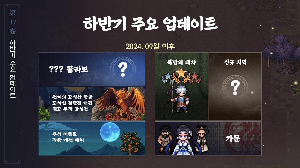 9월 이후에는 바람의나라: 연 만의 방식으로 '가문' 콘텐츠가 새롭게 탄생합니다. 게임의 다양한 NPC를 가문으로 영입해 육성하는 신규 콘텐츠입니다. 신규 PVP 콘텐츠로는 배틀로얄의 특징을 살린 '북방의 패자'가 업데이트될 예정이라고 합니다. 제한 시간 동안 다수의 이용자가 진입, 사냥과 전투를 동시에 진행하는 콘텐츠로, 시간이 지날수록 보상과 난이도가 상승해 박진감 넘치는 전투를 즐길 수 있는 것이 특징입니다.