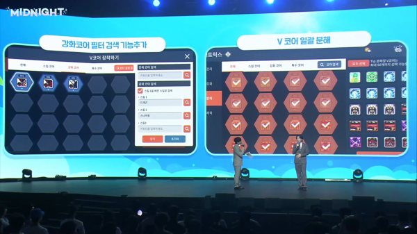 V매트릭스가 개선됩니다. 강화코어에 필터 검색 기능이 추가되고, V코어 일괄 선택 및 분해가 가능해집니다. 그리고, 강화 재료 V코어 일괄 선택 기능도 지원합니다.