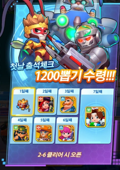 현재 덤벼라 외계인은 첫날 출석체크 1200 뽑기 이벤트가 있는데 이 이벤트는 1200 뽑기가 바로 가능한 것은 아니고