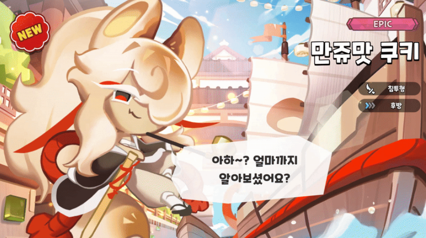 - 만쥬맛 쿠키 (침투형): 눈으로 쫓을 수 없는 '섬광일격'으로 적에게 강력한 피해를 주고 체력을 회복합니다. 샤인쉘맛 쿠키와 함께 전투 시 스킬이 강화되고 즉시 스킬을 사용할 수 있습니다.