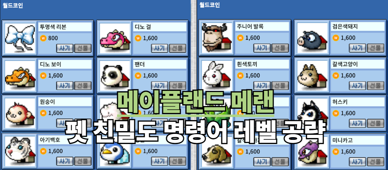 메이플랜드 메랜 펫 친밀도 명령어 레벨 공략