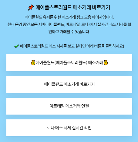 메이플랜드 메소 얻는법 거래 시세 확인 방법 가이드