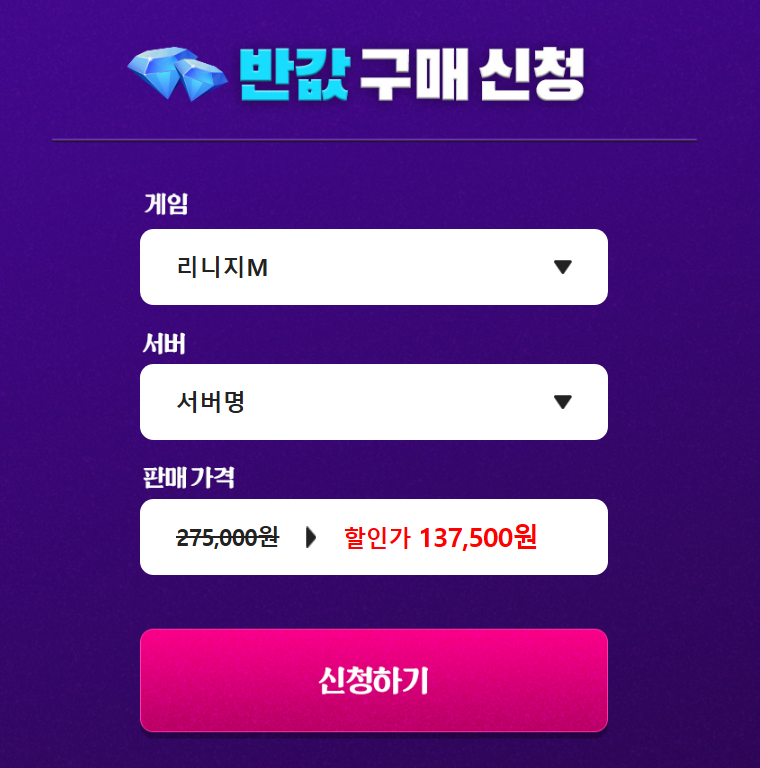이번 이벤트를 통해 정가 275,000원인 리니지M 다이아를 무려 50% 할인된 137,500원에 구매할 수 있습니다. 어떻게 이런 파격적인 거래가 가능하냐고요? 아이템매니아가 직접 선정한 이벤트 대행사를 통해 안전하고 저렴하게 다이아를 거래할 수 있도록 지원하기 때문이죠.