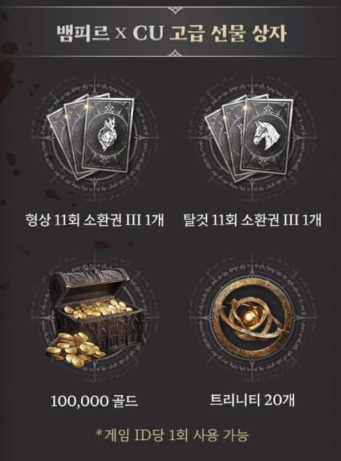 '뱀피르'는 게임 정식 출시 이전부터 꾸준히 다양한 이벤트를 진행하며 유저들에게 혜택을 제공해왔습니다. 이번 포켓CU와의 콜라보 외에도 게임 내에서 진행되는 다양한 이벤트가 준비되어 있으니, 모든 보상을 놓치지 말고 알뜰하게 챙겨보시길 바랍니다.