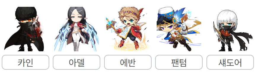 - 보스전 위주로 즐기고 싶다면: 카인, 아델, 에반, 팬텀, 섀도어