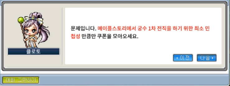 예시로, 마법사 1차 전직 최소 레벨은 8, 전사/궁수/도적은 10, 마법사 최소 지력은 20 등과 같은 기초 문제들이 출제됩니다.