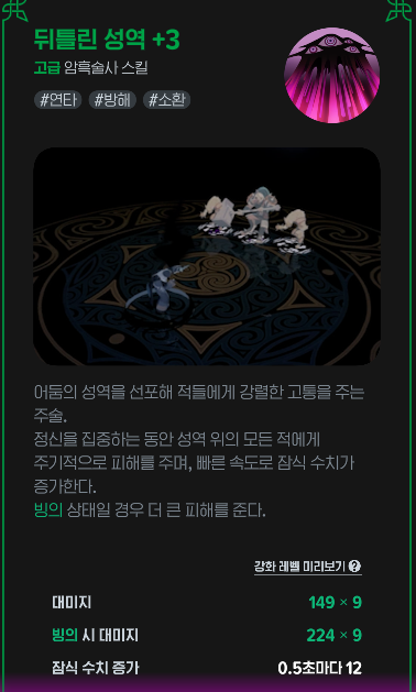 | 4번 | 타락 | 채널링 종료 후 성역 일정 시간 유지. | 안정적인 지속 딜과 잠식 유지에 도움. |
