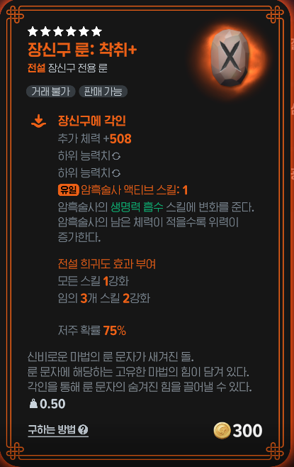 3. 암흑술사 장신구 룬 8종 분석 및 추천 조합
