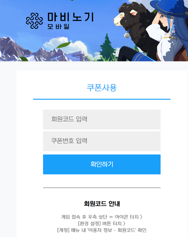 - 쿠폰 입력 페이지 접속: 마비노기 모바일 공식 홈페이지 또는 별도의 쿠폰 입력 페이지에 접속합니다.