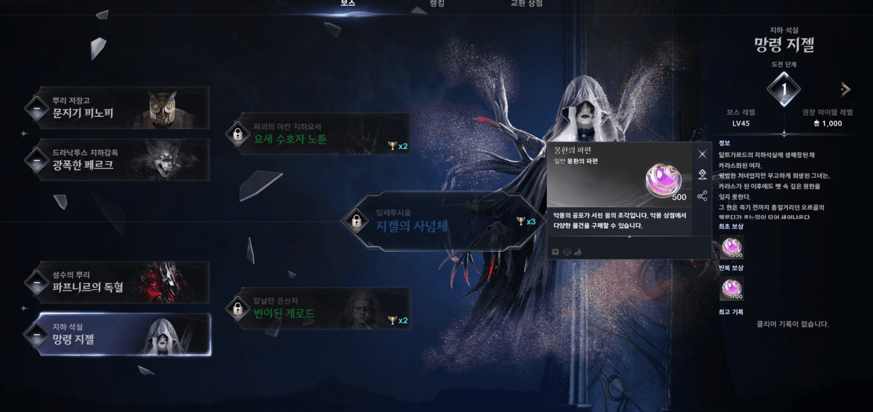 악몽 나만의 한계를 시험하는 1인 도전 콘텐츠입니다. 여기서 얻는 몽환의 파편은 교환소에서 격돌의 룬 상자나 지혜의 돌 같은 필수 성장 재료로 바꿀 수 있습니다. 권장 전투력에 맞춰 도전하고 랭킹 보상도 노려볼 수 있습니다.