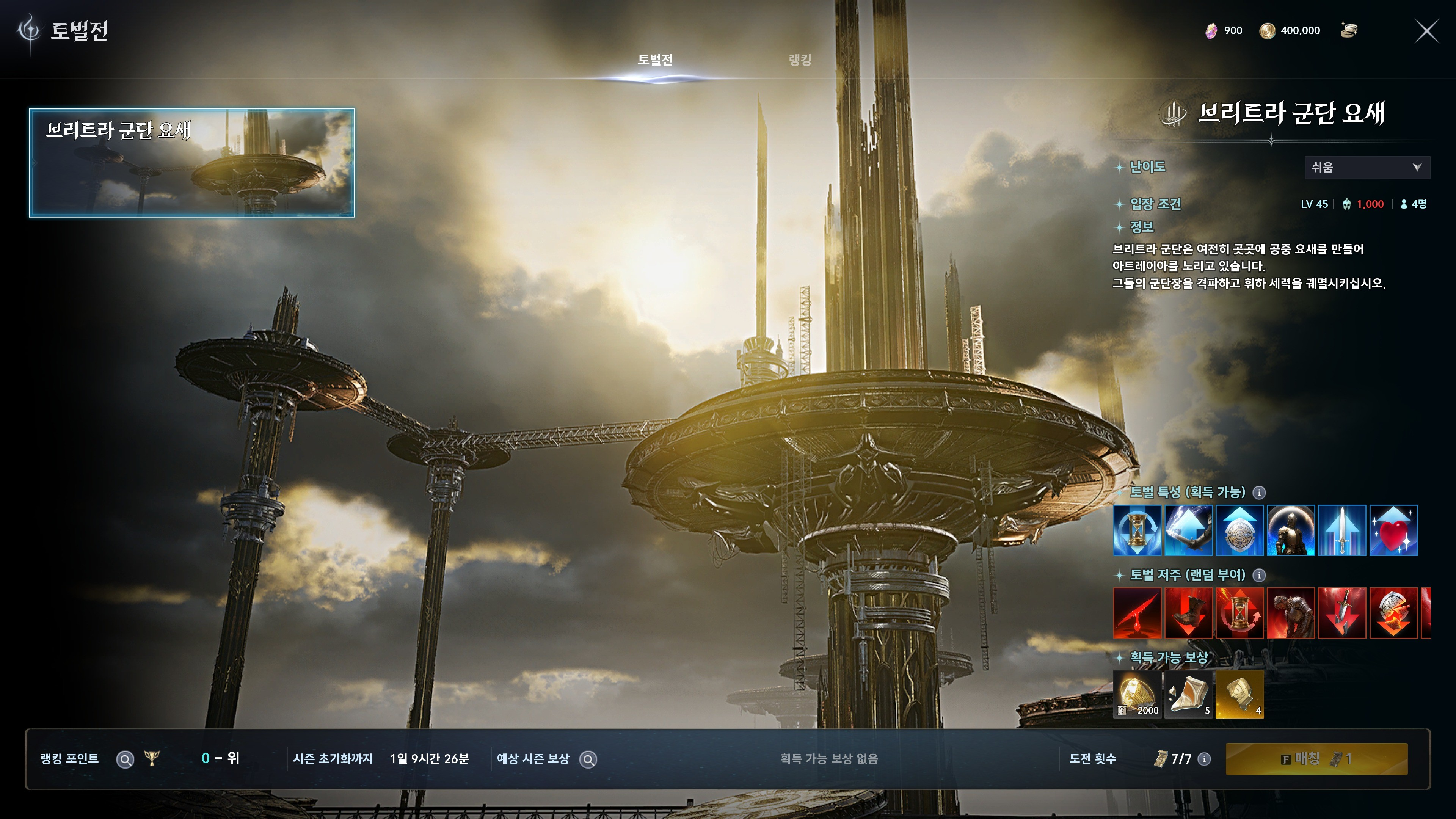 일일 던전 이름은 일일 던전이지만 실제로는 주간 7회 입장 가능한 던전입니다. 다량의 강화석을 수급할 수 있는 곳으로, 점수가 높을수록 보상이 좋아지니 일주일 중 내 스펙이 가장 높은 시점에 몰아서 도는 것도 전략입니다.