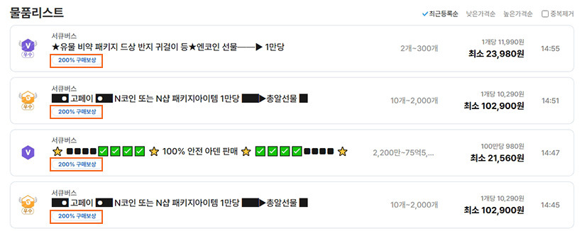 고액 자산 거래 주의사항: 계정, 희귀템, 선호 클래스
