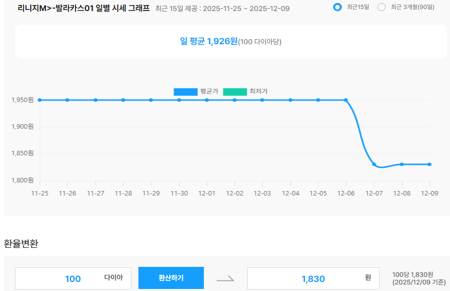 (100 다이아 기준 평균 시세)