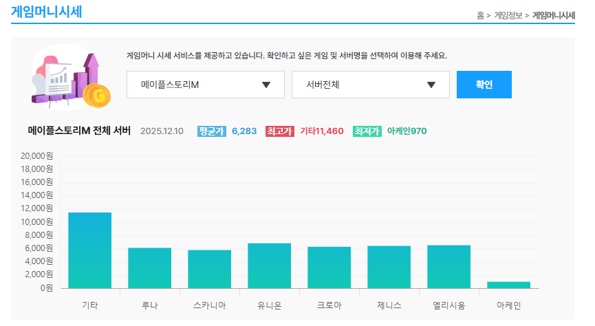 2025년 12월 서버별 시세 흐름을 완전히 다시 정리했습니다.
